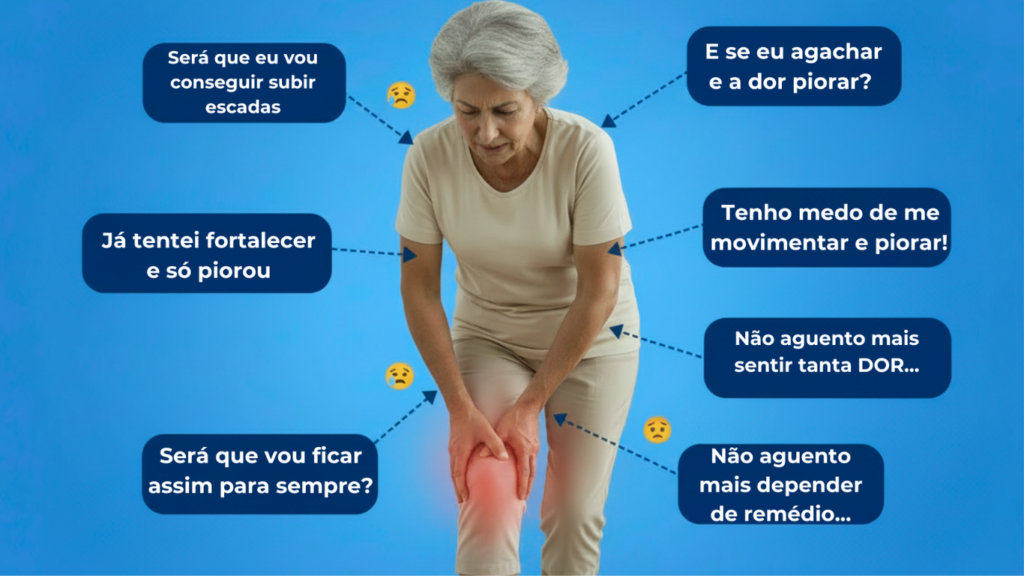 pessoas com dor, medo de piorar e inseguras para se exercitar, após ouvirem que era “coisa da idade”, “desgaste” ou que “depois que machuca, nunca mais volta ao normal”.
